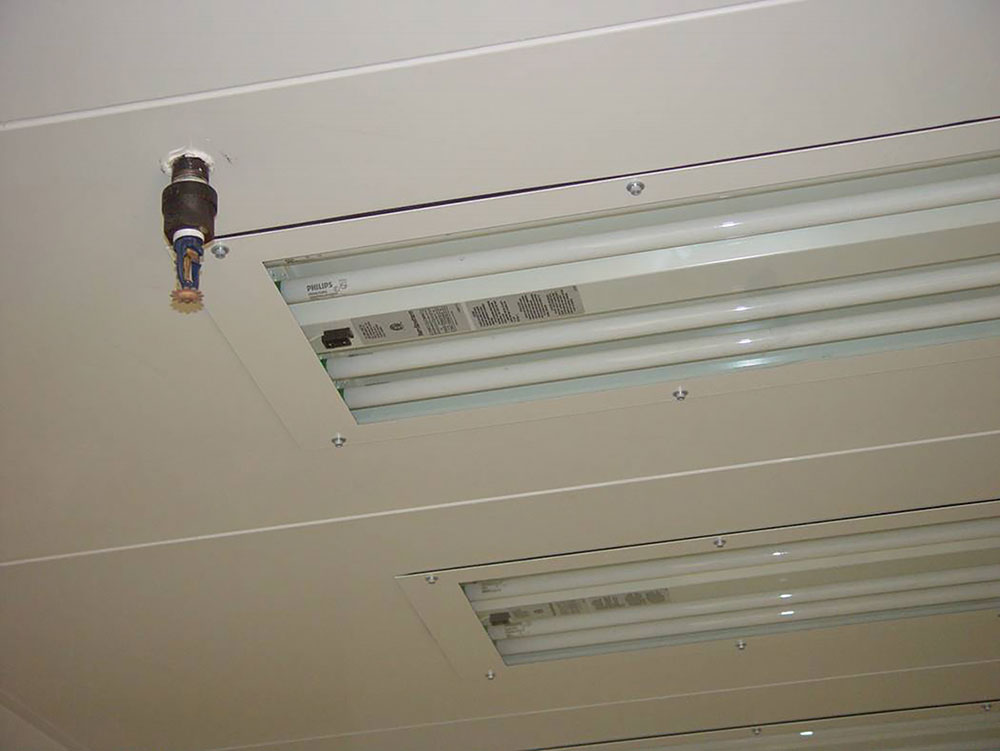Aircraft hangars (Art. 513) define classified zones near floors or ceilings based on fuel properties and ventilation. The first step in lighting is to determine the hazardous envelope per 513.3, Classification of Locations, and its subsections (e.g., below-floor pits, vicinity of aircraft, and areas that are ‘suitably cut off and ventilated”). If an area is properly isolated and ventilated—for example, with mechanical ventilation at or above the required rate—adjacent rooms can be considered unclassified according to 513.3(D), Areas Suitably Separated and Ventilated. This often allows the use of standard luminaires outside the envelope. Within the classified volume, fixtures and wiring must meet Class I standards and be installed in accordance with Article 501/505 (i.e., wiring per Part II and equipment per Part III). Seals are necessary at boundaries to prevent vapor migration (513.9, Sealing). Outside or above the classified limits, the nonhazardous parts of the hangar follow 513.7, Wiring and Equipment Not Installed in Class I Locations, which covers fixed wiring methods and equipment for unclassified areas. This is where many designers place luminaires to avoid explosion-proof construction when space and clearances permit. Specific hangar lighting details also apply: metal-shell, fiber-lined lampholders are not allowed for fixed incandescent lighting [see 513.7(D)], and any portable lighting used for maintenance inside the hangar must be equipped with a heavy-duty cord and an equipment grounding conductor, and be properly rated for the location [513.10(E)(1)].