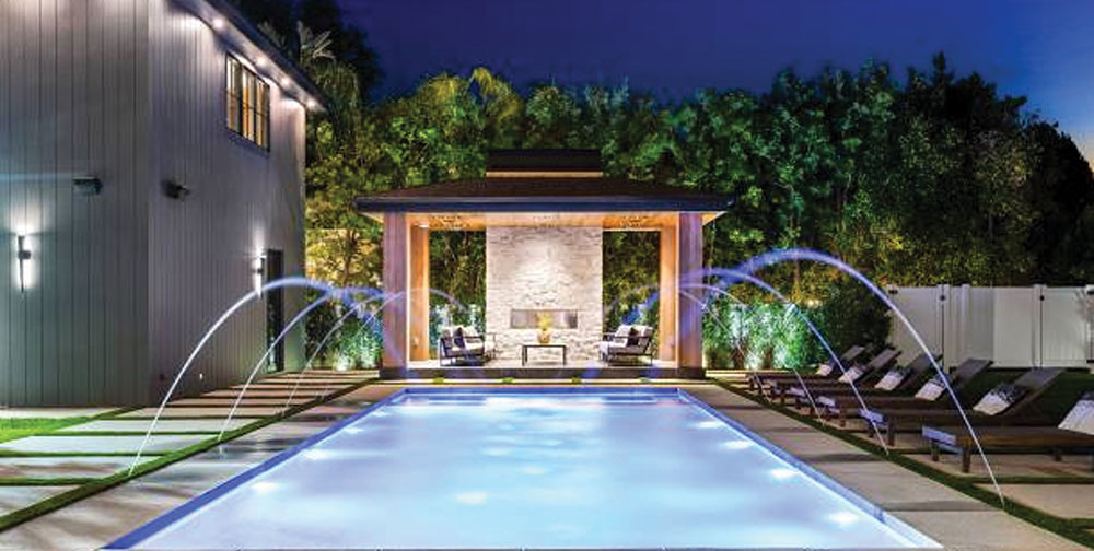 Near water, Articles 680 (pools/spas/fountains) and 682 (natural/artificial bodies not covered by 680) still govern commercial landscapes. Article 680 establishes the requirements for pool, spa, and fountain lighting. For permanently installed pools, luminaires, lighting outlets, and ceiling-suspended (paddle) fans located above the water or within specified horizontal distances from the water’s edge must comply with strict height, clearance, and protection rules [see 680.22(B), Luminaires, Lighting Outlets, and Ceiling-Suspended (Paddle) Fans]. For example, new outdoor installations ≥12 ft above water within the 0–5 ft zone, along with additional provisions for 5–10 ft “adjacent areas.” GFCI or SPGFCI protection is needed where applicable [680.22(B)(1)–(4), (6)]. Recent editions also widened GFCI coverage to include receptacles near pools at higher voltages—any receptacles within 20 ft are GFCI-protected up to 250 V, with SPGFCI where required [680.22(A)(4), GFCI and SPGFCI Protection]. Underwater luminaires must be installed 4–18 in. below the water’s normal level [680.23(A)(5)]; they must be removable to the deck for servicing, with enough cord length [680.23(B)(6)]; and must connect through listed forming shells and junction boxes or enclosures using approved wiring methods [680.23(B)(1)–(3), 680.24]. Bond all necessary metal parts— including metallic forming shells, according to 680.23(B)(5), Luminaire Bonding, and the equipotential bonding rules of 680.26, Equipotential Bonding. These rules work together to keep people and electricity separated by distance, isolation, and quick protection.
