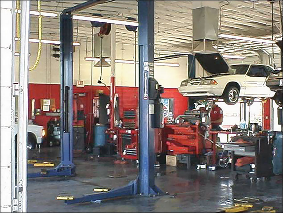 Commercial garages (Art. 511). The classification of floor areas, pits, and ceiling voids depends on fuel type and ventilation: for gasoline and other heavier-than-air fuels, floor areas and pits are classified according to 511.3(C), Repair Garages, Major and Minor. For example, without the required ventilation, the entire floor area is Class I, Div. 2 up to 18 inches above the floor, and pit areas may be classified as Class I, Div. 1. When specified ventilation rates are met, the classification can be reduced. When lighter-than-air fuels such as CNG or hydrogen are involved, the ceiling zone within 18 inches of the highest point is considered for classification under Table 511.3(D). It can be unclassified if ceiling exhaust is provided at ≥1 cfm/ft² with pickup within 18 inches of the high point, or classified as Class I, Div. 2 if such ventilation is not present [511.3(D)]. Any lighting within a classified layer must be installed per Article 501 by direct reference in 511.4(A), Wiring Located in Class I Locations, while wiring and equipment above the classified envelope must comply with 511.7 regarding methods and equipment placement.
