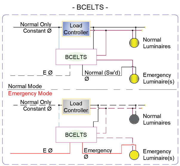 Branch circuit emergency lighting transfer switch: In situations where separate normal and emergency-only power is brought to an individual luminaire, a Branch Circuit Emergency Lighting Transfer Switch, or BCELTS, provides an alternative to centrally transferred architectures like ATS. (See Figure 4).